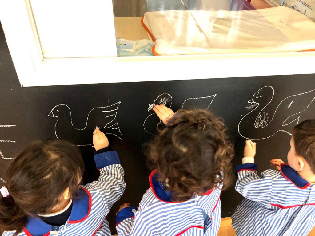 Los niños adquieren el idioma inglés de forma natural, jugando en el aula, realizando actividades con la pizarra digital multitactil, escuchando canciones, bailando, jugando en el patio, interactuando con las profesoras, en el momento de la comida…